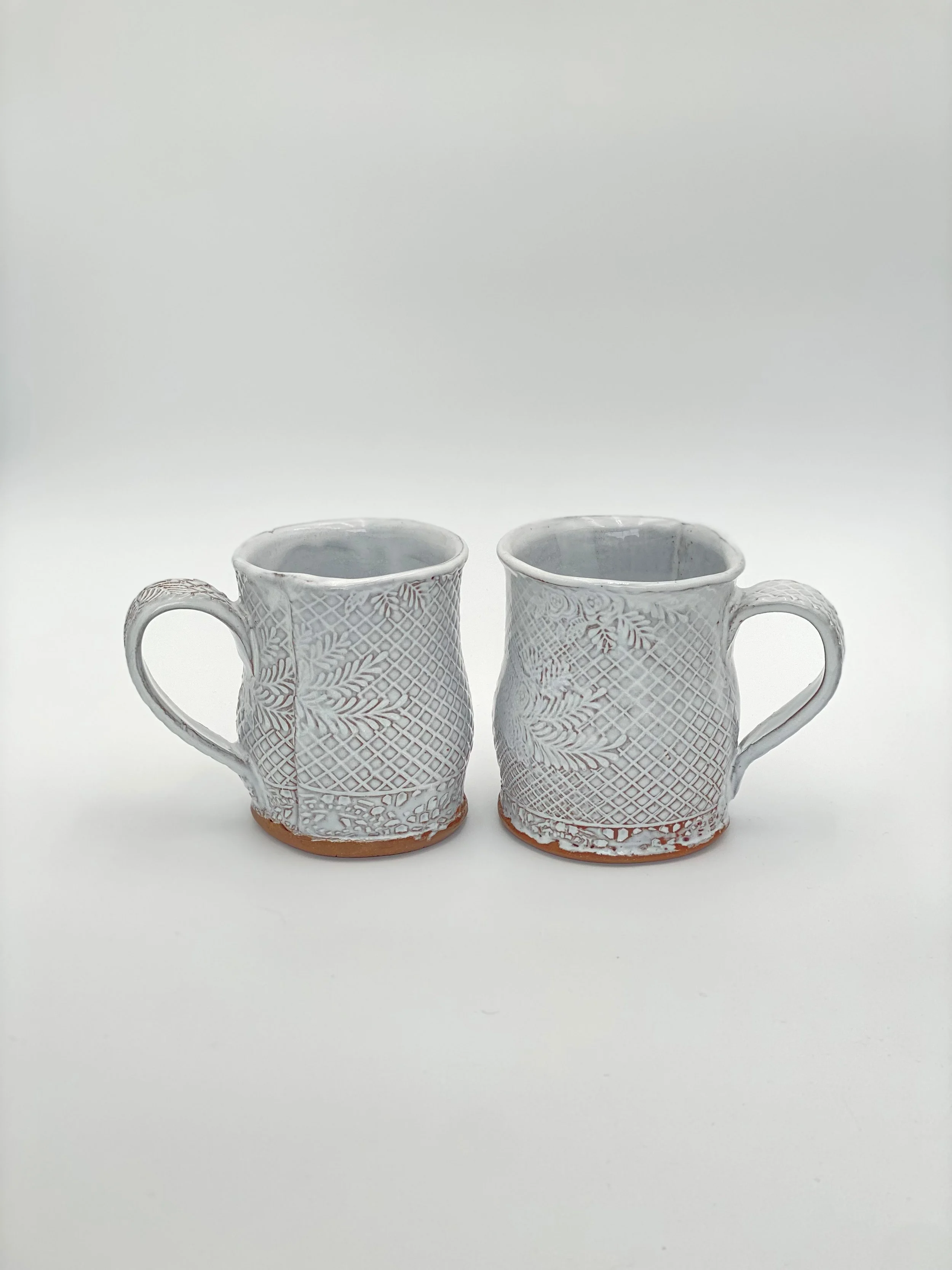Store › Rose Garden Mug Set Rose Garden Mug Set $140.00 Sold Out Dark Mid-Fire Clay4.7 x 3.7”June 2023Rose Garden White large mugs. Hand built from a slab. Dark Mid-Fire Clay4.7 x 3.7”June 2023Rose Garden White large mugs. Hand built from a slab. Sold Out Added! Set of two. You Might Also Like Tall Moss Mugs $60.00 Sold Out Retro White Mugs. $120.00 Sold Out Pair of Mughal Mugs $120.00 Sold Out Pair of Mughal Mugs $120.00 Blue Lagoon Mugs (set of 6) $360.00 Sold Out